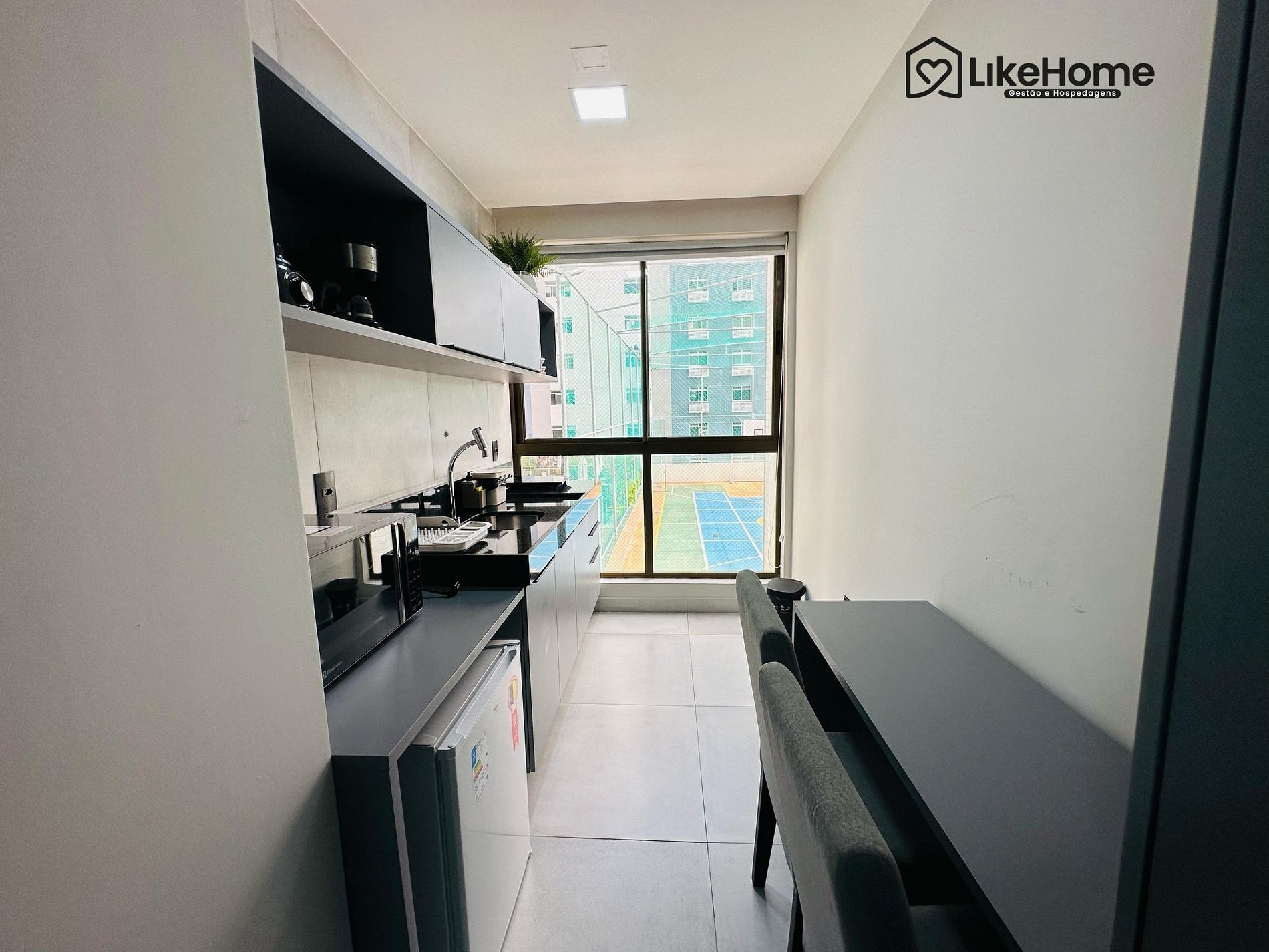 - Cozinha compacta equipada com janelão